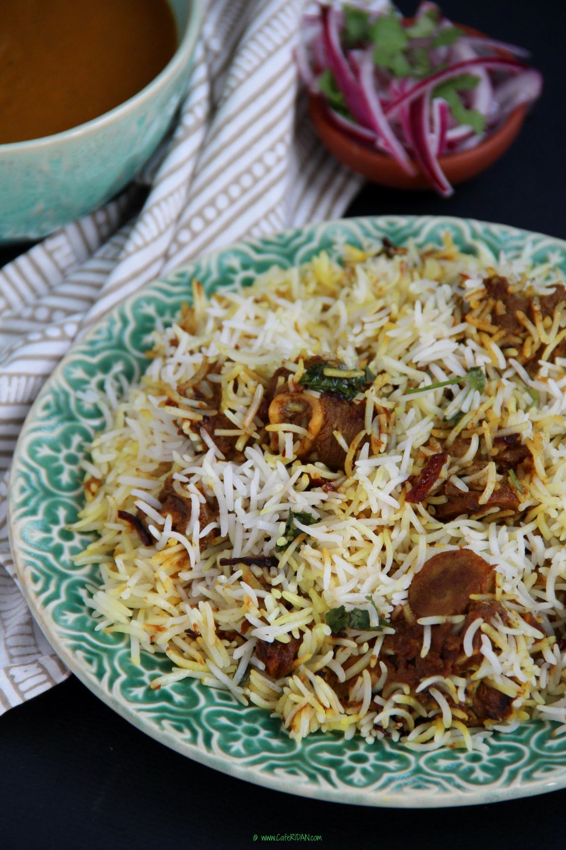 You can also serve the pulao with a cold raita and onion kachumbar (salad). Here is how I make it…