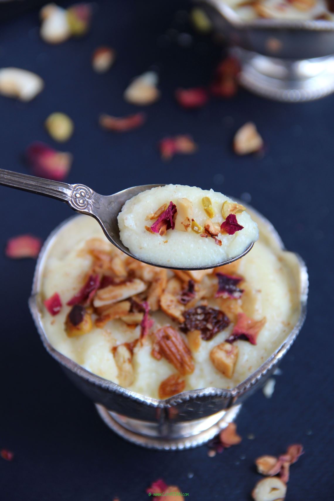 Navroze isn’t compete without Ravo – A delicious creamy semolina pudding flavored with rose water and nutmeg. This recipe is my great grandmother’s and has been passed down a couple generations.